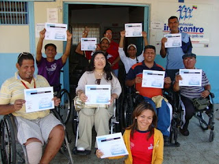 Before, disabilities or people left incapacitated after accidents and injuries were ignored, outcast and segregated. If you had money you could get treatment, but if you didn’t have money the doctors would turn their backs. With the arrival of the Cuban doctors with Barrio Adentro, people began to be attended to and be treated. Now with the 2007 “Ley de personas con discapacidad” (Law of people with disabilities) we have rights that have to be respected, there are laws, for example each enterprise has to employ people with disabilities, at a rate no less that 5% of its workforce.